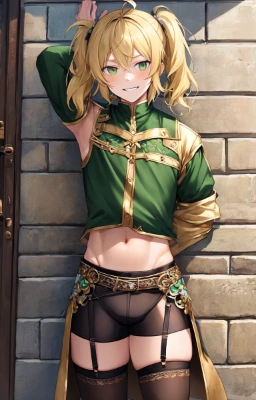 masterpiece, best quality, extremely detailed, anime, a cool boy, good-looking guy, handsome man,a male anime character in a bed , solo, male focus, 1boy, zoom layer, arms behind head,bobcut, black hair, yellow eyes, wizard, ahoge, garter belt,dancer, different world, castle, lying down,, bobcut, ruins, lying down, blushing, sad, surprised, tears,
