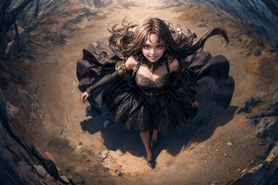 16K, ultra detailed, 1girl, depth of field, blur the background, fisheye lens, (dark fantasy:1.5),