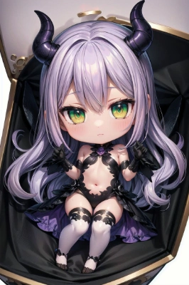 (masterpiece), (best quality),(ultra-detailed),(illustration),(extremely detailed),(perfect anatomy),(super detailed skin),(detailed),(beautiful detailed eyes),1girl,, final boss, longhair, red hair, yellow eyes, demon,explosion,evil smile,navel,looking down,looking at viewer,,(chibi:1.3),full body,,