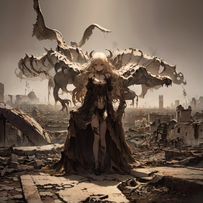 evil female,evil wings,evil horns,flying,