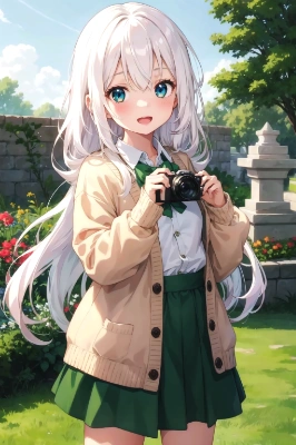(cute girl, girl is 5 years old, girl is toddler, silver hair, long hair, tied hair, blue eyes, beautiful eyes, blush,happy expression),absurdres,highres,ultra detailed,(Precise and unmatched illustrations:1.3), side angle,(japanese animation character design:1.3),An immensely beautiful girl in dress for winter.She peeks out of her tent and looks up at the sky. Snow is piling up all over the campground. A world with an original and fantastical and beautiful atmosphere