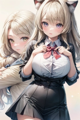 girl,RAW photo, best quality,realistic, photo-realistic, best quality ,masterpiece,an extremely delicate and beautiful, extremely detailed,2k wallpaper, Amazing, finely detail, 8k wallpaper,huge filesize , ultra-detailed, highres, extremely detailed,realistic, 8K, Ultra-High Definition, highest quality, ultra high resolution, (realistic:1.3), High quality texture, (2girls:1.1), kimono, shawl, cat ears, cat tail, medium breast, blond hair, pattern, (tan:1.2), wet hair, , wet skin, (Blazer, blazer uniform, Class room, bone-in meat:1.6), daytime, <lora:flat2:-0.7> <lora:sanDka2:0.2>Japanese-style room, porch,japanese garden view:1.1),(tatami:1),,,,,,,,,,,,,,,,,