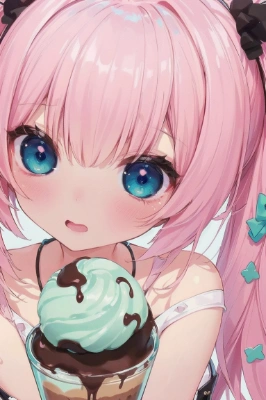 (masterpiece), (best quality),(ultra-detailed),(illustration),(extremely detailed),(perfect anatomy),(super detailed skin),(detailed),(beautiful detailed eyes),1girl,chibi,solo, chocolate mint, twintail, pink hair, blue eyes,ice cream,sailor collar,layered skirt,smile,standing on one leg,boots,heart,,