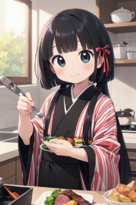(((very longest hair))),black hair, smile, straight Hair,hair ribbon,mintgreen stripe,Black Eyes,flat chest,straight Across bangs,princess Cut, Very Long Sideburn,roundry Head,Droping eyes,cute,Meekness,Bob Cut,long back hair,12 years Old,loli, pastel color,