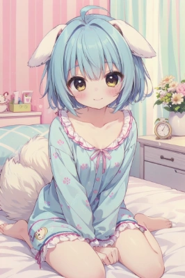 pastel color,pastel pink teddy bear,hug a pastel pink teddy bear,solo,bear girl,bear ears,pastel yellow sofa,pastel color knitted sweater,masterpiece, best quality, extremely detailed, anime, girl,long hair,Braid,pastel green hair,pastel pink eyes, watercolor,pastel blue children,