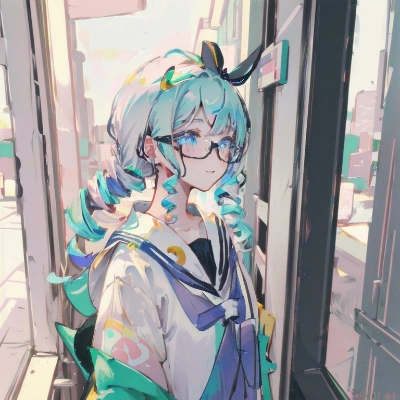 (pastel color:2), (masterpiece, best quality, extremely detailed, anime), (white colored room:1.5), (pastel colored display:1.4), (white laptop pc:1.4), (white rabbit toys araund model:1.6), (solo girl),teenage girl, (white hair, drill hair, long hair:1.5), original character, smile+happy, (pink thick frame glasses,headphone), (white colored sailor suit:1.4), upper body, side view, side facing,<lora:flatBG:0.45> <lora:boldline:0.95> ,