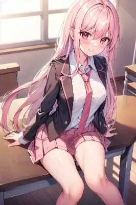 (masterpiece, best quality, great:1.2), illustration, CG, 1girl, solo, (blush:1.1), smile, View from above, look this way, (close up:1.2), (long hair, pink hair:1.2), red eyes, cute face, kawaii, School uniform, white Y-shirt, (red checke miniskirt:1.2), (red ribbon necktie:1.1), medium breasts, delicate hair, disheveled hair, floating hair, shiny hair, shiny skin, town, shelter from the rain, cinematic lighting, (light pink lips:0.8), (nipple:1.1), (wet hair:1.5), rain