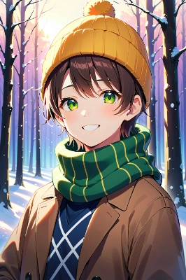 masterpiece,best quality,high quality,((((1man, one male handsome man,age 30, one solo )))), purple eyes, cool with suspended eyes, V-shaped eyebrows, body strong and fearless, 8.5 head tall, 185 cm,((( well-groomed, short black hair down to neck))), (((bangs in threes, split parted))), slender nose, facial muscles, throat, (((clothes are winter fashion, knit hat))), (((background winter night sky , forest))),Composition bust-up