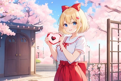 anime style girl, blonde short hair, blue eyes, red ribbon, (hair bow:1.2),red bow,with friends, shopping mall, crowded, winter season, wearing long sleeves, joyful expression, indoor setting, vibrant store lights, holiday decorations, holding shopping bags, walking and talking, warm atmosphere, casual winter fashion, boots, scarves, festive mood, (hair color:blonde)(eye color:blue)(accessory:ribbon:red:1.1)(season:winter)(clothing:long sleeves)(location:shopping mall)(activity:with friends)(mood:joyful)(setting:indoor crowded)(fashion:winter casual)(decorations:festive)(action:shopping)