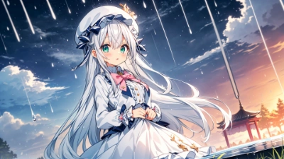 (ultra miracle detail master piece:1.2),(ultra miracle detail Photoshop quality:1.2),(gradation icy color cool color:1.2),(ultra miracle detail beyond imagination light novel illustration:1.2),(ultra miracle detail beyond imagination screen tone:1.2),(water color hdr wdr iso cgi effect:1.2),(rough sketch:1.2),(ultra miracle detail innocence lolita pretty cute (kawaii:1.4) cute pretty lolita innocence:1.3),(Fluffy medium long silver hair:1.2),(vivid gradation emerald eyes),(natural make face:1.2),(elf ears:0.7),(elaborate design beret ribbon hat),(ultra miracle detail elaborate design white long sleeve blazer school costume),(elaborate design skirt),(red tie),(ultra miracle detail extremely Exquisite A dreamlike ultra rich real background:1.2),(The most beautiful December constellations you can see in the park background:1.2),(ultra miracle detail innocence kawaii:1.2),(medium breasts),(gorgeous),(flour bouquet:1.2),(garden),(bouquet:1.2),(shining girl),(calmness),(gardening:1.2),(butterfly),<lora:add_detail:0.7> <lora:sharpen-soften:0.15>