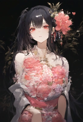 1girl,japanese girl,cool face,red eyes,red eyeshadow,long eyelashes,black hair,long hair, ponytail,flower hair ornament,white lotus,sumi-e,japanese painting,sepia color,masterpiece,very aesthetic,extremely detailed,high resolution,perfect anatomy,, best quality, amazing quality, very aesthetic, absurdres