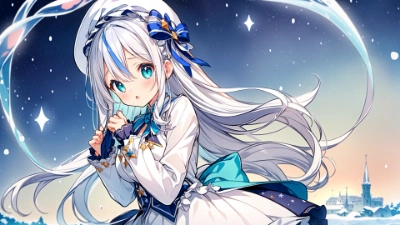 (ultra miracle detail master piece:1.2),(ultra miracle detail Photoshop quality:1.2),(gradation icy color cool color:1.2),(ultra miracle detail beyond imagination light novel illustration:1.2),(ultra miracle detail beyond imagination screen tone:1.2),(water color hdr wdr iso cgi effect:1.2),(rough sketch:1.2),(ultra miracle detail innocence lolita pretty cute (kawaii:1.4) cute pretty lolita innocence:1.3),(Fluffy medium long silver hair:1.2),(vivid gradation emerald eyes),(natural make face:1.2),(elf ears:0.7),(elaborate design beret ribbon hat),(ultra miracle detail elaborate design white long sleeve blazer school costume),(elaborate design skirt),(red tie),(ultra miracle detail extremely Exquisite A dreamlike ultra rich real background:1.2),(Beautiful constellations in the night sky visible from the city background:1.2),(ultra miracle detail innocence kawaii:1.2),(medium breasts),(gorgeous),(scattert:1.2),(blessing dramatic:1.2),(shining girl),(calmness),(Moist eyes:1.2),(around winter:1.2),(Valentine day kiss:1.2),(heartful life:1.2),(heart chocolate:1.2),<lora:add_detail:0.7> <lora:sharpen-soften:0.15>