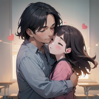 (best quarity:1.2),masterpiece,(1 middle-aged teacher man and 1 elementary school student girl:1.2),they are kissing,(big heart mark behind them:1.2),