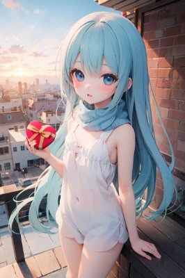 ((masterpiece, best quality, extremely detailed, absurdres)), , masterpiece, best quality, extremely detailed, (((pale blue long hair))), long hair cute anime faces, detailed light, parted lips, shiny、beautiful detailed face, , longhair、, 10 years old, , 1girl, solo, flat chest, blush, bangs, , super fine illustration, 8k wallpaper, (photo background:1.3), small breasts, (slender, , narrow waist, thin legs:1.2), shiny skin,kawaii, glowing, perfect ligthing, distinct, ultra-detailed, , happy kiss, hand drawn, anime face, 1 , solo, embarrassed, look up,realistic,(gleaming pale skin), white skin,(from above)、(((((a very delicate and beautiful girl))))),Amazing,beautiful detailed eyes,,blunt bangs、((((little delicate girl))) 、(anime artwork:1.5),masterpiece,best quality,Ultra detailed,8k,ultra detailed,highly detailed,physics-based rendering,cinematic lighting,(realistic:0.3),BRAKE,1girl,architecture,blush,box,bridge,building,chocolate,city,cityscape,cloud,cloudy sky,dusk,evening,fringe trim,gift,gift box,gradient sky,happy valentine,heart,heart-shaped box,holding,holding box,holding gift,lamppost,long sleeves,looking at viewer,mountainous horizon,orange sky,outdoors,ed sky,rooftop,scarf,sky,skyline,skyscraper,solo,sunrise,sunset,tower,town,tree,twilight,valentine, <lora:deluster1:1> <lora:sanDka1:1> ,