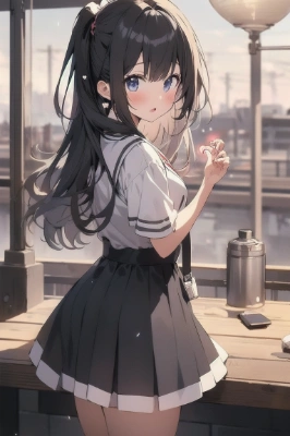 masterpiece, best quality, extremely detailed, anime, girl, bikini, greatbust,skirt, Heart, girl, ponytail, silver hair, blue eyes, red eyes, odd eyes, magical girl, colorful, magic, summer, day, clear sky, sea, playing, beach, sunny day, jumping, happy, laughing,
