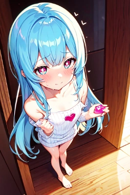 ((masterpiece, best quality, extremely detailed, absurdres)), , masterpiece, best quality, extremely detailed, (((pale blue long hair))), long hair cute anime faces, detailed light, parted lips, shiny、beautiful detailed face, , longhair、, 10 years old, , 1girl, solo, flat chest, blush, bangs, , super fine illustration, 8k wallpaper, (photo background:1.3), small breasts, (slender, , narrow waist, thin legs:1.2), shiny skin,kawaii, glowing, perfect ligthing, distinct, ultra-detailed, , happy kiss, hand drawn, anime face, 1 , solo, embarrassed, look up,realistic,(gleaming pale skin), white skin,(from above)、(((((a very delicate and beautiful girl))))),Amazing,beautiful detailed eyes,,blunt bangs、((((little delicate girl))) 、(anime artwork:1.5),masterpiece,best quality,Ultra detailed,8k,ultra detailed,highly detailed,physics-based rendering,cinematic lighting,BRAKE,1girl,architecture,blush,box,bridge,building,chocolate,city,cityscape,cloud,cloudy sky,dusk,evening,fringe trim,gift,gift box,gradient sky,happy valentine,heart,heart-shaped box((curvy)),frilled dress,shy,(looking_down:1.5),wavy hair,(from above:1.4),looking at another,(upward glance),heart cushion,face-down, heart hair ornament,sitting,<lora:deluster1:1> <lora:sanDka2:1> ,