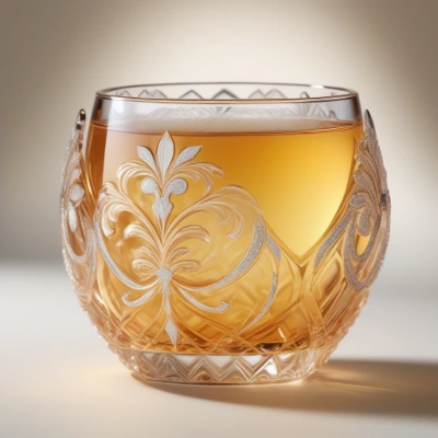 a cup of inspired by Satsuma Kiriko and baccarat VITA tumbler a beautiful golden royal fabergé cup, Filled with coffee,