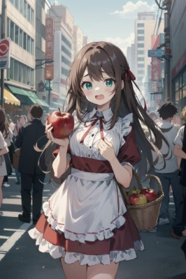 masterpiece, best quality, best quality drawn, When I saw your fresh bangs under the apple tree,A flower comb in my bangs I thought she was a beautiful woman like a flower, You kindly extended your white hand and gave me an apple, It