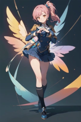 masterpiece, best quality, highly detailed CG unity 8k, depth of field, super fine illustration:1.5), illustration, CG, 2D, Anime style, complicated, (perfect anatomy), extremely detailed 1 girl, contrapposto, standing, look at viewer, beautiful face, detailed face, dignified face, kawaii, smug smile , detailed eyes, (red eyes:1.2), (twintails:1.3), (short hair:1.2),(red hair:1.2), delicate hair, (magical girl theme:1.5), large breasts, (slender body, slender legs), bloomer, white kneehighs, (intricate human hands fingers:1.2), perfect fingers, nice hand, BREAK, high quality fantasy art, beautiful digital artwork, exquisite character art, (burning-edge:1.2) ,, <lora:gloweyes_v100:1> <lora:eyecolle_iberis_v100:1> ,