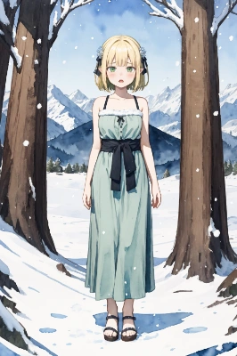 1girl, solo,loli, child, green eyes, blonde bob hair, pointy ears, flat chest,