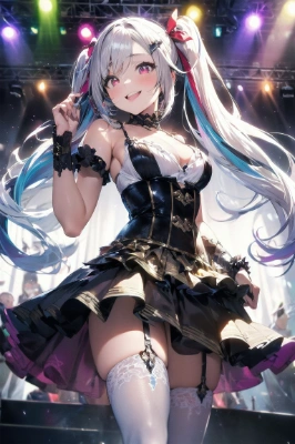 masterpiece, best quality, extremely detailed, anime, 3girls,(chibi:1.3),multiple girls,idol,idol clothes,multicolored shirt,multicolored skirt,multicolored clothes,multicolored corset,frilled skirt,hair ornament,hair ribbon,hair bow,star (symbol),heart,smile,one eye closed,, twintail, longhair, ahoge, shorthair, blue hair, pink hair, blonde hair, blue eyes, red eyes, yellow eyes,