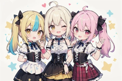 (masterpiece), (best quality),(ultra-detailed),(illustration),(extremely detailed),(perfect anatomy),(super detailed skin),(detailed),(beautiful detailed eyes),1girl,solo,idol,red hair,very long hair,yellow eyes,leotard,red jacket,sleeveless jacket,cropped jacket,gold trim,thighhighs,open mouth,smile,stage,stage lights,looking at viewer,looking down,dancing,,
