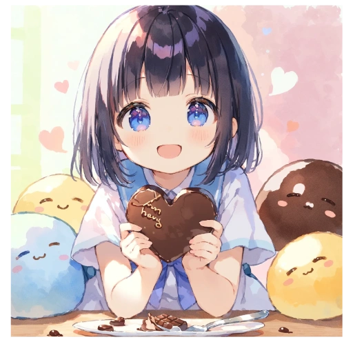 (Masterpiece:0.9), best quality, (illustration, official art:0.95), hyper detail, 1 girl, solo, skirt, ojousama, sparkling eyes, lovely princess red ribbon, Valentine chocolate, (cinematic lighting, Depth of field:1.05), confectioner, Lots of sweets, hyperrealism, [(black background:0.8)::0.1], (shop interior background:1.25), detailed background,