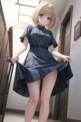 (masterpiece, best quality, absurdres, extremely detailed), (pale colors:1.05), Clarity, cute girl, one girl, slim body, flat chest, (long straight hair:1.1), blunt bangs, (dark orange hair:1.2), (dark green eyes:1.1), (valentine chocolate in hand:1.2), school, corridor, (midi dress, light blue dress, burberry plaid dress:1.1), , <lora:hairdetailer:0.75> <lora:make25d_type4_v100:0.95> ,,,,,,