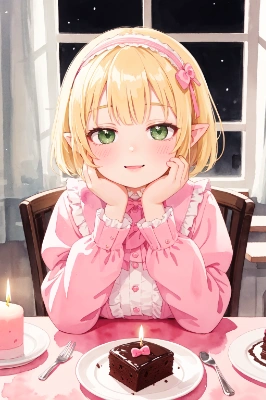 1girl, solo, black long hair, (twintails:1.2), blunt bangs, (pink ribbon:1.05), black hair, earrings, purple eyes, long eyelashes, red eyeliner, large breasts, jirai kei,