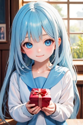 masterpiece, best quality, extremely detailed, (illustration, official art:1.1), 1 girl ,(((( light blue long hair)))), light blue hair, ,10 years old, long hair ((blush)) , cute face, big eyes, masterpiece, best quality,(((((a very delicate and beautiful girl))))),Amazing,beautiful detailed eyes,blunt bangs((((little delicate girl)))),tareme(true beautiful:1.2), sense of depth,dynamic angle,,,, (show off own areola slip:1.2)affectionate smile, (true beautiful:1.2),,(tiny 1girl model:1.2),)(flat chest)), ((masterpiece, best quality, extremely detailed, absurdres)),,looking at viewer,((small breasts)),beautiful jpn-girl, (best quality:1.2)solo, Cinematic Light、【emblem:Irridescent color 】、,masterpiece, best quality, extremely detailed, anime , (1 girl), teenage girl, original character blue sky, colorful, pastel color, blushing, Valentine style clothes, fantasy, Valentine,Girl wearing an apron, making Valentine