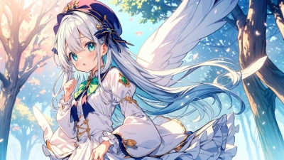 (ultra miracle detail master piece:1.2),(ultra miracle detail Photoshop quality:1.2),(gradation icy original primary colors:1.4),(ultra miracle detail beyond imagination light novel movie poster image illustration:1.2),(ultra miracle detail beyond imagination screen tone:1.2),(ultra anime color hdr wdr iso cgi effect:1.2),(anime cg illustration:1.2),(ultra miracle detail innocence lolita pretty cute (kawaii:1.4) cute pretty lolita innocence:1.3),(Fluffy medium long silver hair:1.2),(vivid gradation emerald eyes),(natural make face:1.2),(elf ears:0.7),(elaborate design beret ribbon hat),(ultra miracle detail elaborate design white long sleeve blazer school costume),(elaborate design skirt),(red tie),(ultra miracle detail extremely Exquisite A dreamlike ultra rich real background:1.2),(Meeting in the city background:1.2),(ultra miracle detail innocence kawaii:1.2),(medium breasts),(gorgeous),(scattert:1.2),(blessing dramatic:1.2),(shining girl),(calmness),(Moist eyes:1.2),(warm winter snow:1.2),(flour magic splash:1.2),(musical notes:0.7),(heart notes:0.7),(chocolate notes:0.7),(SUNlight:1.2),(colorful days:1.2),(luster gloss:1.2),(Valentine day),(school bag),<lora:add_detail:0.7> <lora:sharpen-soften:0.15>