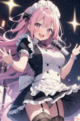 masterpiece, best quality, extremely detailed, anime, girl, skirt, animal ears, girl, braids, long sleeve, maid uniform, blonde hair, odd eyes, maid, chibi character, deformed, fantasy, colorful, cat, cafe, cooking, panty shot, smile, standing, laughing, happy,greatbust,