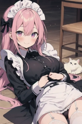 masterpiece, best quality, extremely detailed, anime, girl, miniskirt, dream pretty, girl, braids, short sleeve, puff sleeve, purple hair, blue eyes, red eyes, odd eyes, chibi character, deformed, fantasy, colorful, magic, different world, blue sky, panty shot, smile, flying, sunny day, smiling, happy,greatbust,