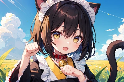 「猫耳あるから今日は猫ちゃんとあそぼー♪」 ポニテちゃんは適応力が高い娘です♪ 猫と一緒に戯れてるイラストがいい感じに思ってます💕