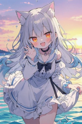 (((4 people))),cat girls,warrior,have a weapon,big explosion,fighting pose,wilderness,great joy,smile,:d,masterpiece, best quality, extremely detailed, anime, cat,cats,pretty little girl, puff sleeve, chibi character, fantasy, colorful, clear sky,cowboy shot,