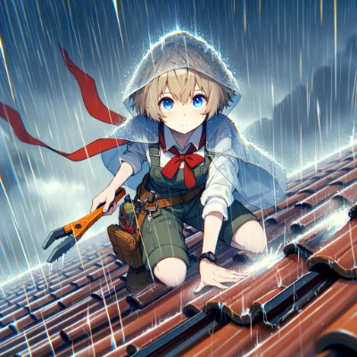 loli,giril,girl in a brightly colored raincoat, determinedly fixing a burst pipe,(hair bow:1.2),red bow, blue eyes,showcasing resilience and skill, amidst a challenging backdrop of overflowing water and scattered tools, her blonde short hair with a red ribbon adds a touch of brightness to the scene, high quality