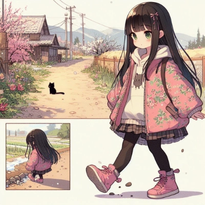 雨の音って、なんか悲しいですよね モチーフは「Rhythm of the Rain(悲しき雨音)」 カスケーズ(The Cascades)、1962年の曲です もちろん失恋の歌ですね 雨音に耳を澄ますと、自分の愚かさに気づく 彼女はどこかへ行ってしまったけど、僕はまだ愛しているんだよ… 的な内容の歌です 当然、女の子に泣いてもらいましたけど… 窓際に座らせて、雨音を聞いている雰囲気にしました 原題の直訳が「雨のリズム」なので、「floating winding staff notation with musical notes」として、雨と一緒に五線譜と音符を流しています 余談ですけど、この曲で使われているチェレステ(ピアノが弦をハンマーでたたくのに対して、グロッケンシュピールのような鉄板をハンマーでたたく構造の鍵盤楽器)の高音が雨音に聞こえるような気がします さて、またアメリカに戻ってきちゃいましたけど… イギリスかフランスあたりのオールディーズに泣き顔が出せる曲あったかな