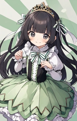 (((very longest hair))),black hair, smile,straight Hair,hair ribbon,Mintgreen stripe,Black Eyes,flat chest,straight Across bangs,princess Cut, Very Long Sideburn,roundry Head,Droping eyes,cute,Meekness,Bob Cut,long back hair,12 years Old, kimono,anime coloring,