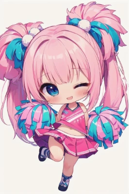 (masterpiece), (best quality),(ultra-detailed),(illustration),(extremely detailed),(perfect anatomy),(super detailed skin),(detailed),(beautiful detailed eyes)1girl,solo,, Cheerleader, longhair, ponytail, pink hair, blue eyes,sailor collar,red neckerchief,navel,miniskirt,smile,pom pom (cheerleading),below,looking down,looking at viewer,breast,sky,smile,arm up,one eye closed,open mouth,upper teeth only,,,,