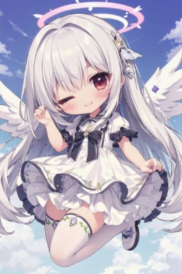 (masterpiece), (best quality),(ultra-detailed),(illustration),(extremely detailed),(perfect anatomy),(super detailed skin),(detailed),(beautiful detailed eyes),1girl,solo,, twintail, blue eyes, pink hair,waitress,anna miller,(white shirt:1.1),short sleeves,puffy short sleeves,suspender skirt,(pink skirt:1.3),(pink apron:1.3),underbust,cup,hot chocolate,tray,smile,one eye closed,breast,looking at viewer,(chibi:1.3),full body,,