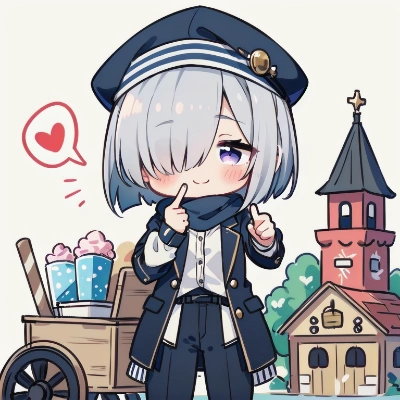 masterpiece,best quality, (chibi:1.4) town street food-cart food-stall large-hot-cocoa cocoa table (solo:1.2) girl princess purple-eyes ((silver-short-bob-hair:1.4)) ((mekakure, hair over eyes, bangs, long bangs,:1.6)) round-glasses blazer skirt beret winter-scarf smiling blush shy speech-hearts, kawaii shy-heart-accesory, high-fantasy-style,,,