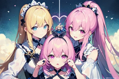masterpiece, best quality, extremely detailed, anime, girl, skirtSuper resolution, high quality, high resolution, 8K HD, family, pop, ((eating luxurious food)), (dreamy, fluffy, heart magic effect), pop, bright light, rich colors, fine details, fine line drawing,