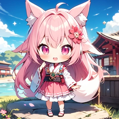 設定資料集。うちの子。ピンクの狐巫女さん。