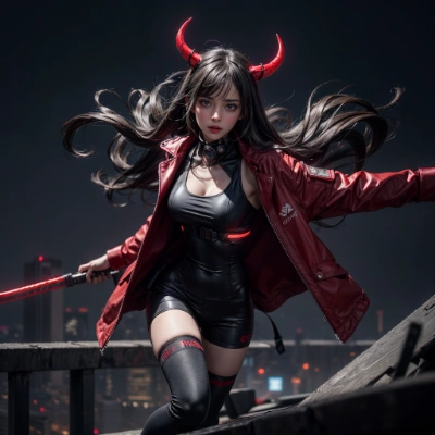 Ultra-high definition image, photo quality, one beautiful female woodworker, various woodworking machines, Asian, many types of wood, devil's horns, devil's wings, blue work clothes, by guraAIart<lora:EMS-179-EMS:0.800000>