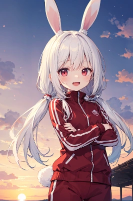 (red eyes),((long hair)), ((rabbit girl,white bunny ears)),(white hair),cute face,