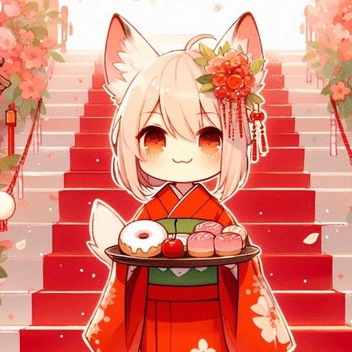 あかりをつけましょ ぼんぼりにー♪ おあげをあげましょ きつねちゃん〜 ごはんハヤシに おつけものー きょうはたのしーひなまつりー♪ いっぱい🍚もらえるおまつり だいすきー💕 ぼんぼりーってどのオカシかなぁー🧁