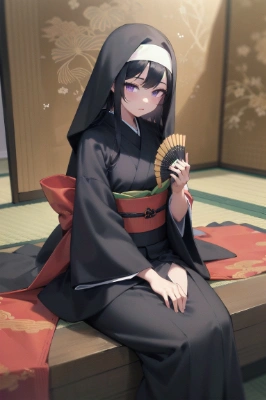 お題だし、本日は「ひな祭り」なので、毎度よく使っているお嬢さま達のお雛さまver.を作成しようかなと。 でも、十二単とか正座とかは生成難しく、お雛さまというより、「ひな祭りを楽しんでいる」という感じの和装になりましたが……。 こちらは大航海時代風世界を舞台にした海洋冒険ファンタジー小説 『El Pirata Del Grimorio ~魔導書の海賊~』(※下記URL参照) に登場する主要キャラの海賊の一人、東方人のカンフーロリ少女、陳露華(チェンルゥファ)。 カンフー少女なのでちょっぴり中華風に。