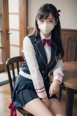 (photorealistic:1.4), (RAW photo), masterpiece, best quality, extremely detailed, lady, almond shaped eyes, cold gaze, staring, fearless smile, neat and clean, big collar puffer jacket, (3D shaped silver mask:1.2), leather tight skirt, pantyhose, black long hair,