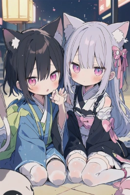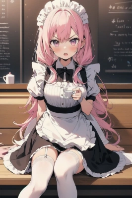 masterpiece, best quality, extremely detailed, anime, girl, miniskirt, Three Sisters, girl, longhair, maid uniform, short sleeve, garter belt, blonde hair, silver hair, black hair, blue eyes, red eyes, black eyes, maid, multiple people, colorful, fantasy, magic, cafe, different world, smile, happy, smiling,greatbust,