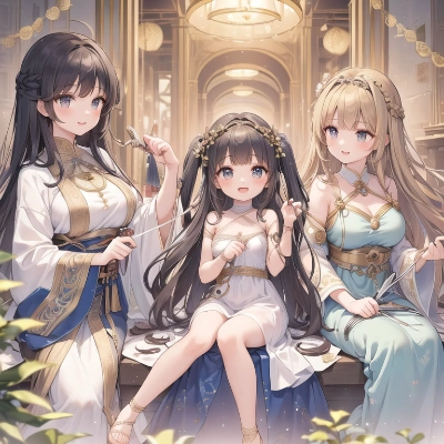 (best quarity:1.2),masterpiece,gloomy atmosphere,greek mythology style,3girls,three sisters,goddess,adult,slender,medium breasts,snake hair,(blood eyes:1.2),(dog ears:1.2),(bat wings:1.2),black sexy dress,sexy panty,black sandals,crazy_smile,sitting on hell rock,sexy pose,(holding_whip:1.2),in hell,hell sky,panty_peek,looking_at_viewer,